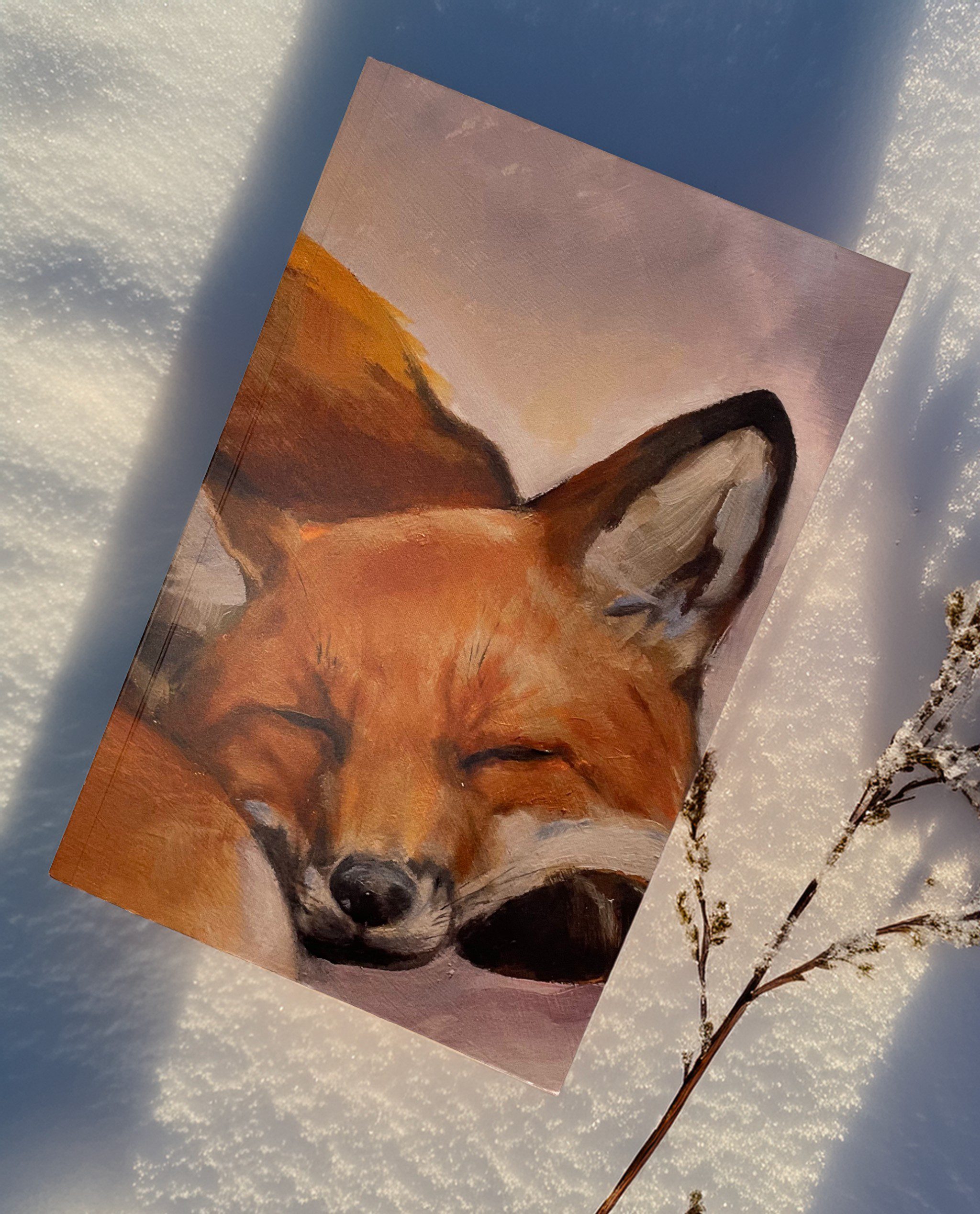 Tämän muistikirjan kannessa lepää sympaattinen Nukkuva kettu.