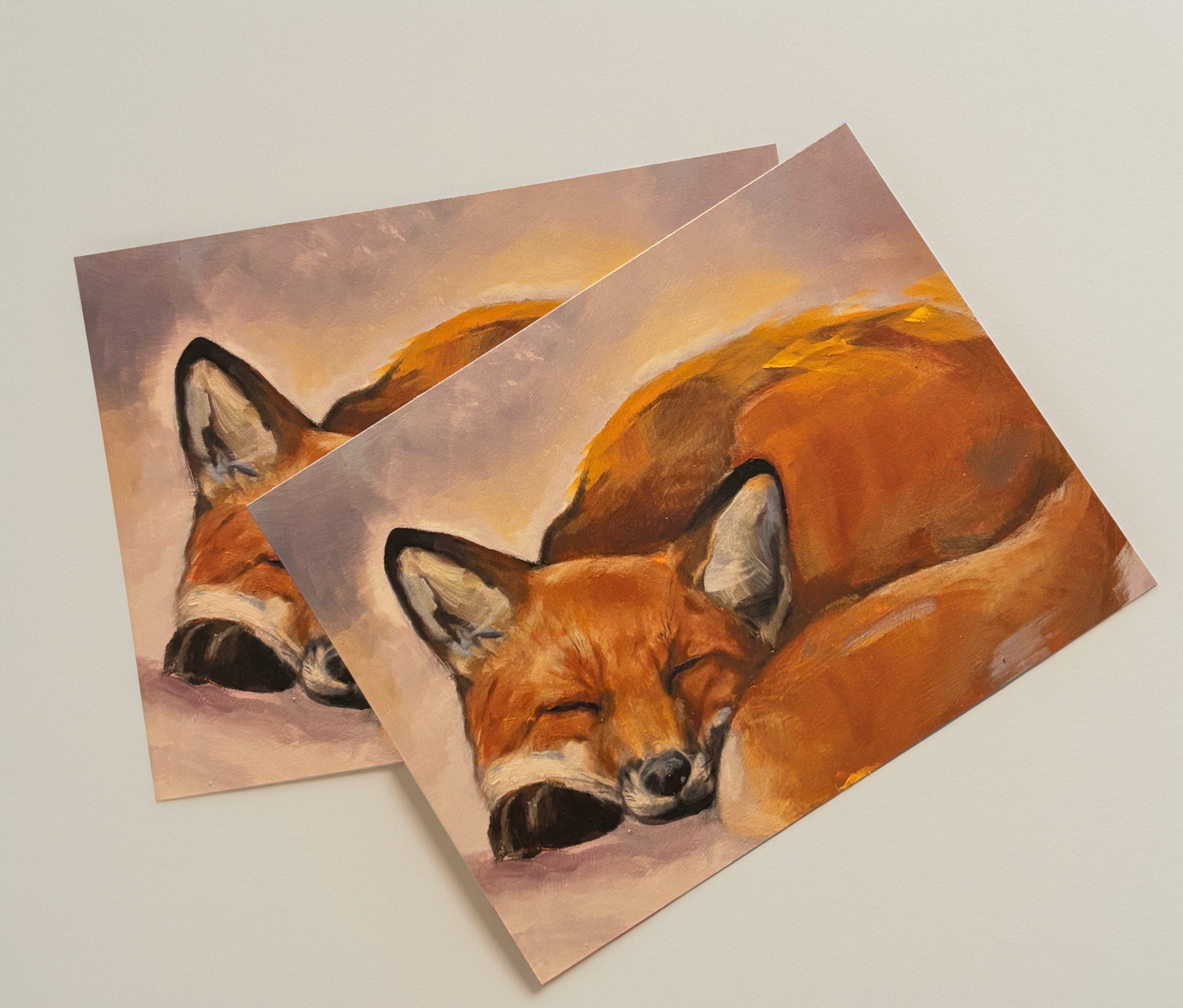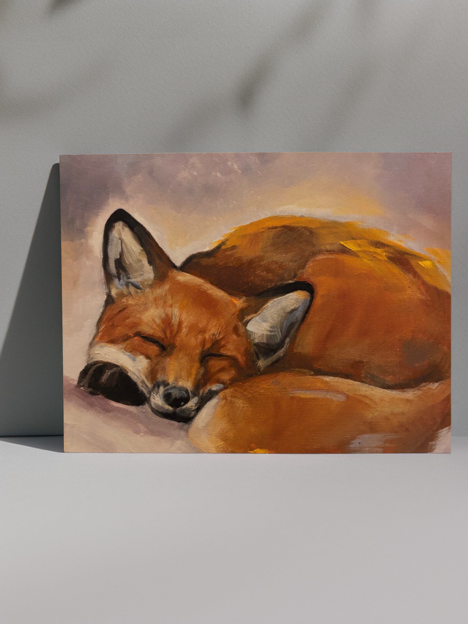 Taidepostikortti, jonka kuosina on alkuperäinen käsin maalattu öljyväriteos. Tässä postikortissa ilahduttaa suloinen nukkuva kettu. Laadukas painojälki tuo esiin teoksen sävyt ja yksityiskohdat kauniisti.